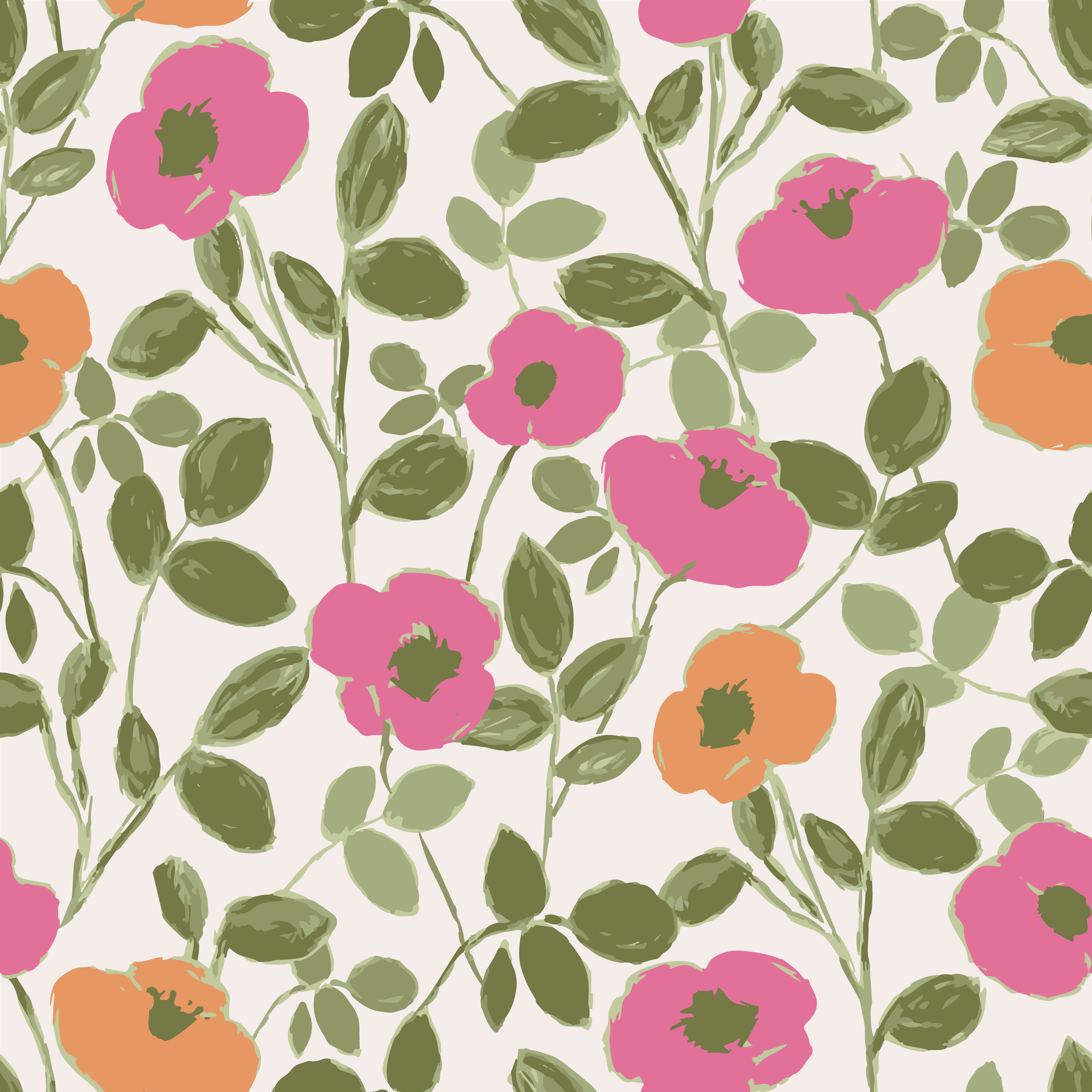 A charming homestead-inspired watercolor collection featuring floral and meadow motifs in a soft, natural palette. Designed with coordinated repeats and adaptable colorways, this group translates beautifully to wallpaper, bedding, and decorative textiles. Alternate scales and colors available.